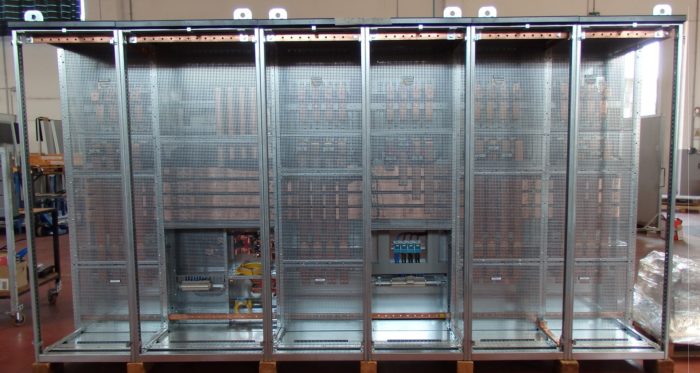 E’ stato pertanto realizzato un quadro con camminatoio interno per agevolare i collegamenti e la manutenzione ordinaria con un ingombro in profondità inferiore ai 1200 mm.